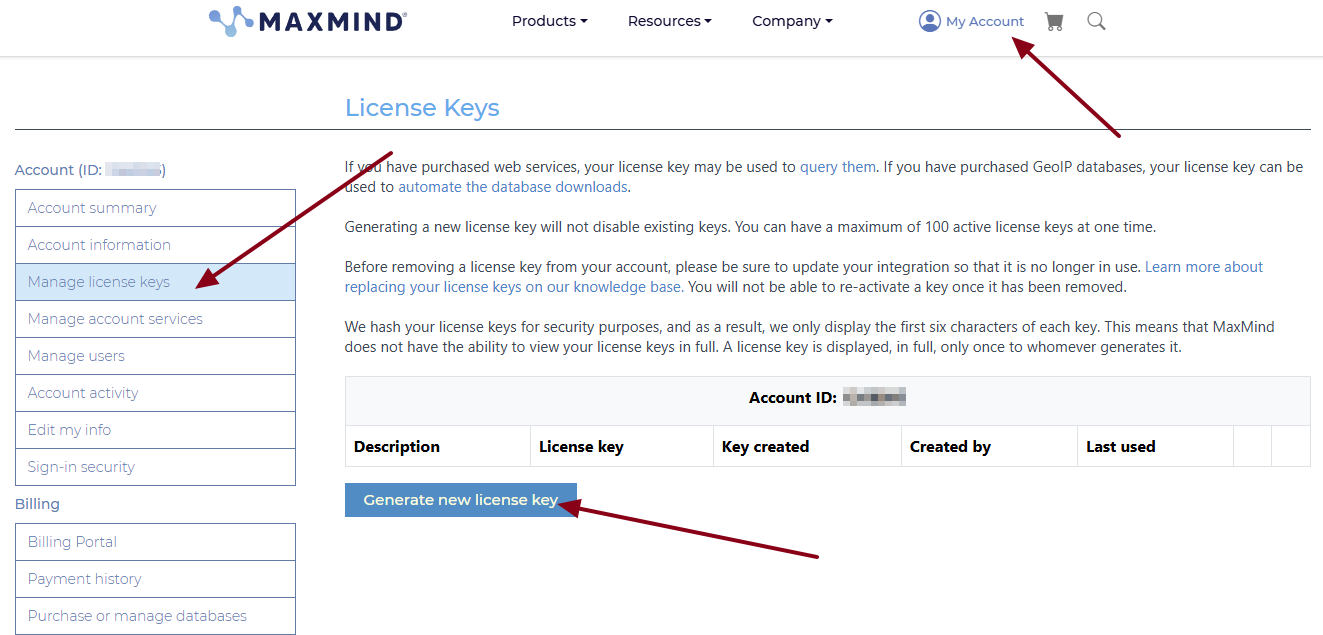 Sie haben die Möglichkeit, sich bei MaxMind (Link) einen kostenlosen Account zu erstellen.