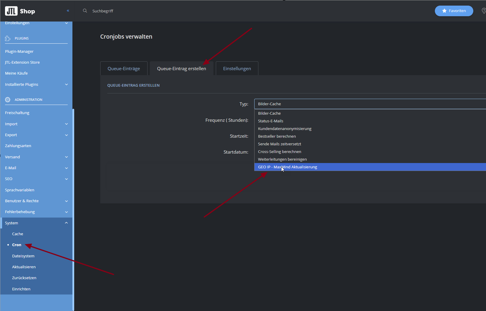 Die Datenbank von MaxMind kann über die cronjobs des Shops automatisch aktualisiert werden, es reicht in der Regel aus, dies einmal die Woche durchzuführen. Hierfür können Sie im Shop, in der Cron Verwaltung, den Cron für die automatische Aktualisierung einrichten.